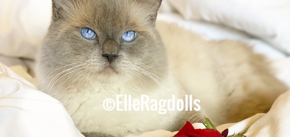 that saved the day at the end of the Jurassic World movie. He has lived up to that name because he is our fluffy hero! King Blue is housed with the founder of ElleRagdolls. Blue was Elle's first Ragdoll and the very reason why she wanted to share and grow this wonderful breed. He was everything and more that she read about this breed. Elle knew that families needed his lovable and delightful personality. He truly steals the hearts of his owners, friends, and of course, wives.